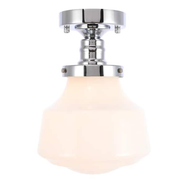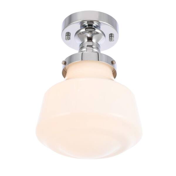 Timless Home 8 in. 1-Light Industrial Chrome And Frosted White Glass Flush Mount with No Bulbs Included