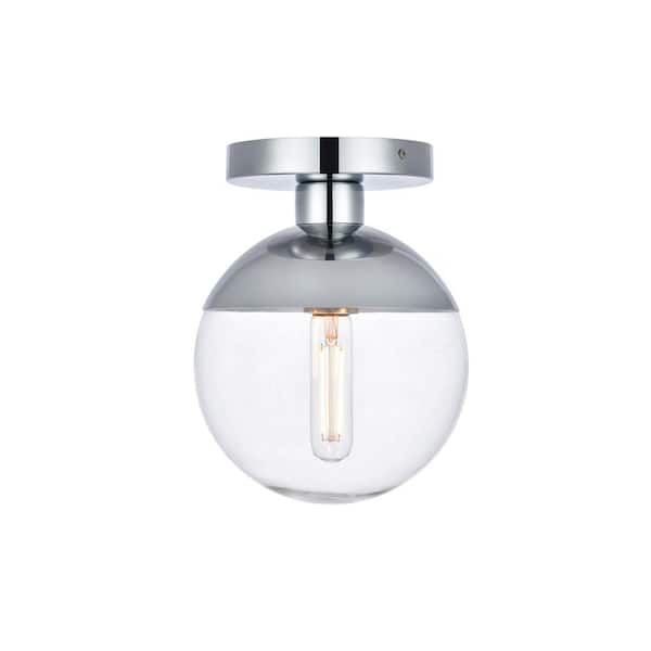 Timless Home 8 in. 1-Light Midcentury Modern Chrome and Clear Flush Mount with No Bulbs Included