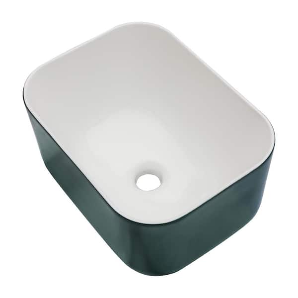 16 in. Vessel Rectangular Bathroom Sink in Green Ceramic