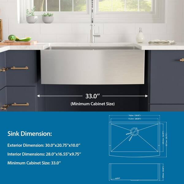 30 in. Farmhouse Single Bowl 16 Gauge Brushed Nickel Stainless Steel Kitchen Sink with Bottom Grids