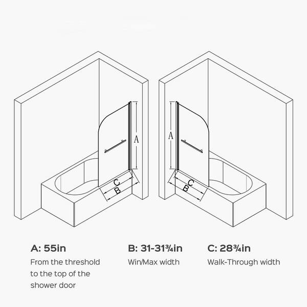 31 in. W x 55 in. H Pivot Tub Door in Brushed Gold with Clear Glass