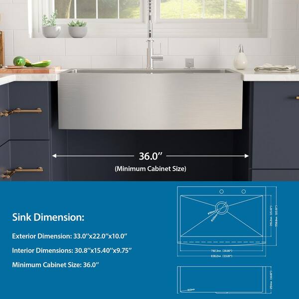 33 in. Farmhouse Single Bowl 16 Gauge Brushed Nickel Stainless Steel Kitchen Sink with Bottom Grids
