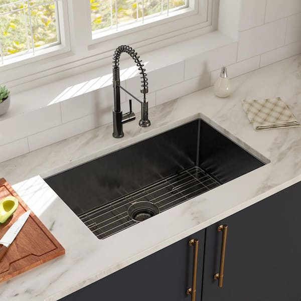33 in. Undermount Single Bowl 16 Gauge Gunmetal Black Stainless Steel Kitchen Sink with Bottom Grids