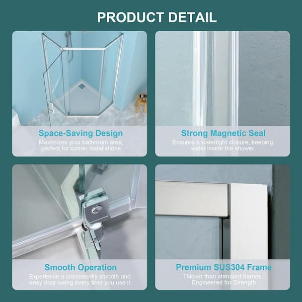 • Neo-angle pivot door for easy, walk-in shower entry