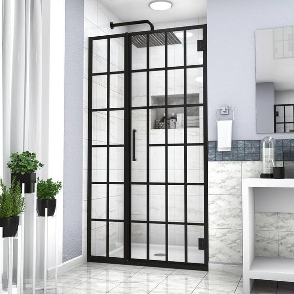40 in. W x 72 in. H Pivot Semi-Frameless Shower Door in Matte Black Finish with Pattern Glass