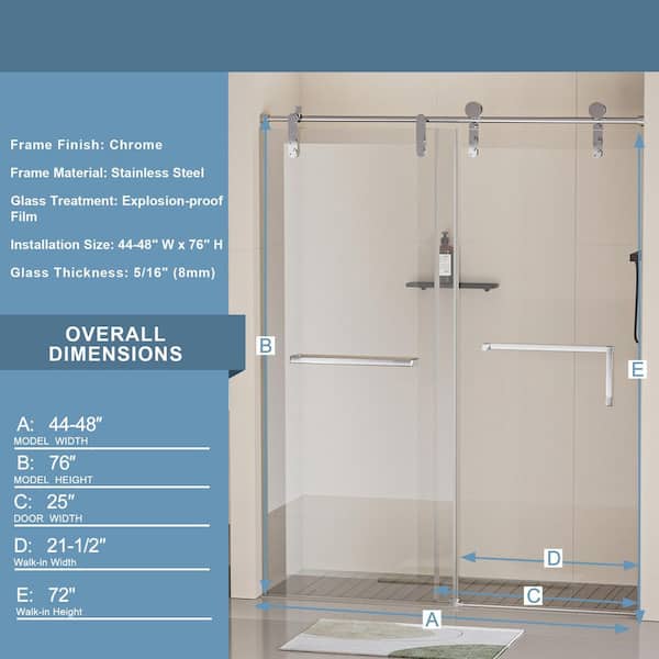 44 to 48 in. W x 76 in. H Single Sliding Frameless Shower Door in Chrome Finish with Clear Glass