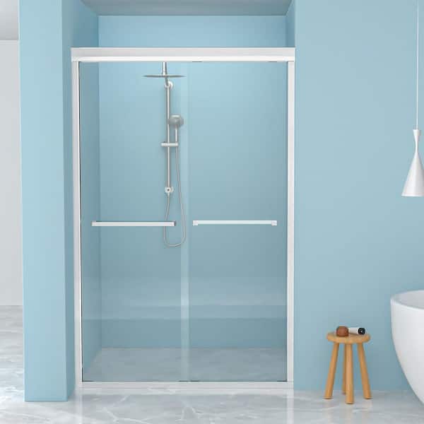 48 in. W x 76 in. H Double Sliding Framed Shower Door in Chrome Finish with Clear Glass