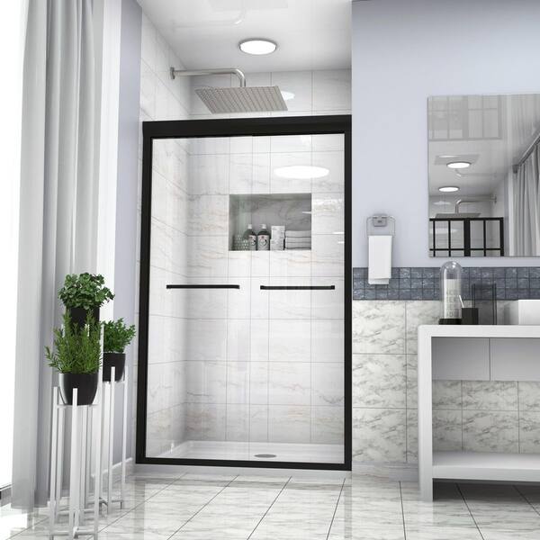 48 in. W x 76 in. H Double Sliding Framed Shower Door in Matte Black Finish with Clear Glass