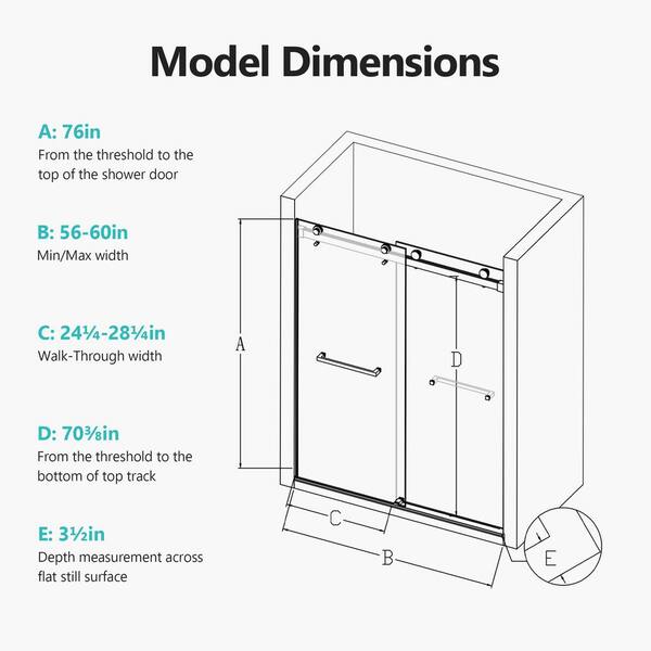 56 to 60 in. W x 76 in. H Double Sliding Frameless Shower Door in Chrome Finish with Clear Glass