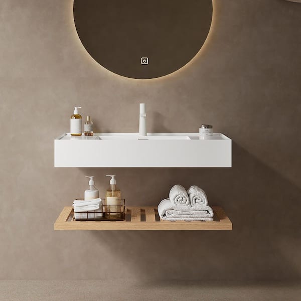 6.89 in. White Acrylic Wall-Mounted Bathroom Integrated Sink and Shelf
