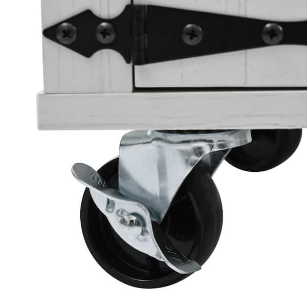 White Rubber Wood Kitchen Cart with Drop Leaf and Power Outlet
