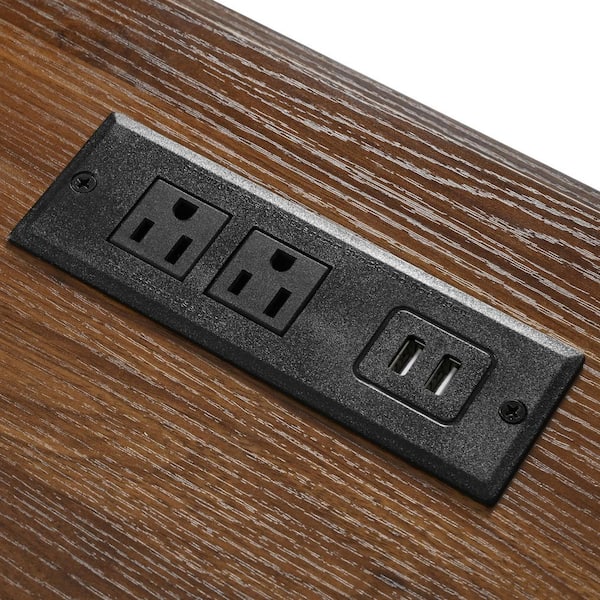 White Rubber Wood Kitchen Cart with Drop Leaf and Power Outlet