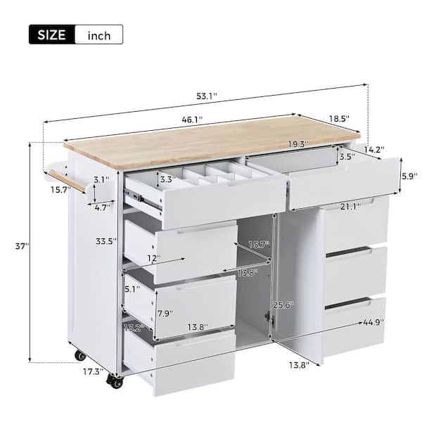 White Rubber Wood Kitchen Cart with Spice Rack and Towel Rack