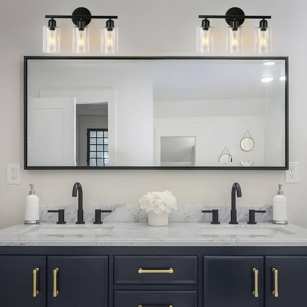 16.93 in. 3-Light Modern Black Wall Vanity Light with Clear Glass Cylinder Shades for Bathroom or Dressing Area