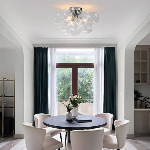 17.7 in. 3-Light Modern Bubble Glass Flush Mount Ceiling Light in Chrome with Clear Globe Shades for Dining, Living room
