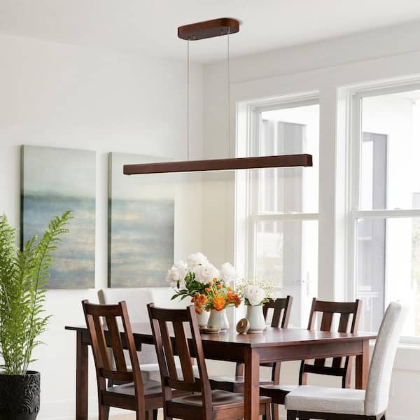 39 in. 1-Light LED Dining Room Light Fixture Walnut Color Wood Linear Adjustable Height Pendant Light Fixtures kitchen