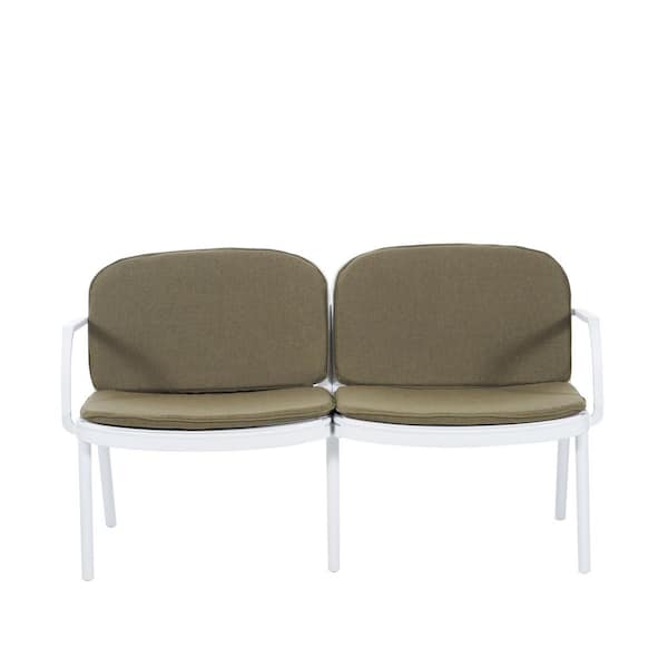 White Plastic Outdoor Loveseat with Forest Green Natural Cushions