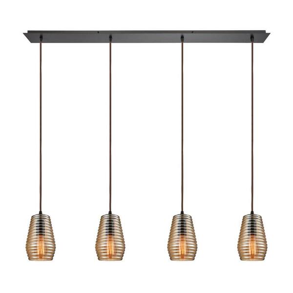 Ribbed Glass 4-Light Oil Rubbed Bronze Pendant