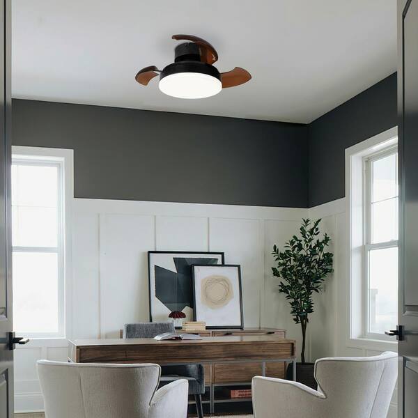 24 in. Modern Indoor Recessed Low Profile Black Ceiling Fan with LED Light, Retractable Fan Blade