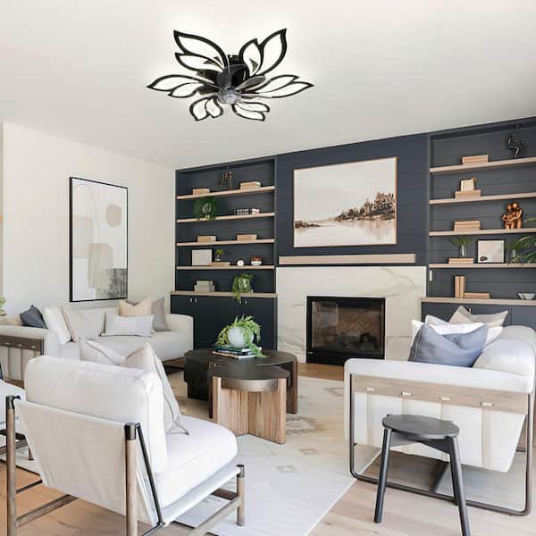 25.59 in./2.13 ft. 6-Black Petal Shaped Dimmable Ceiling Fan with LED Lights Remote Control and APP
