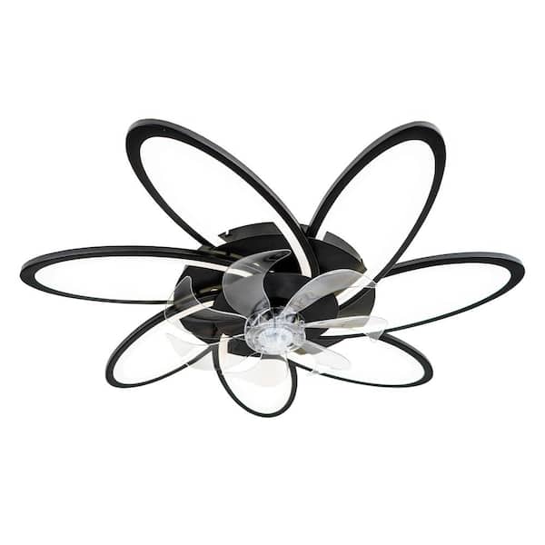 29.25 in. Indoor Modern Black Modern Recessed Ceiling Fan with Light, Bedroom White LED Ceiling Fan