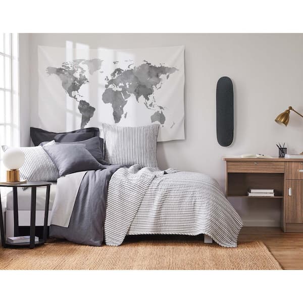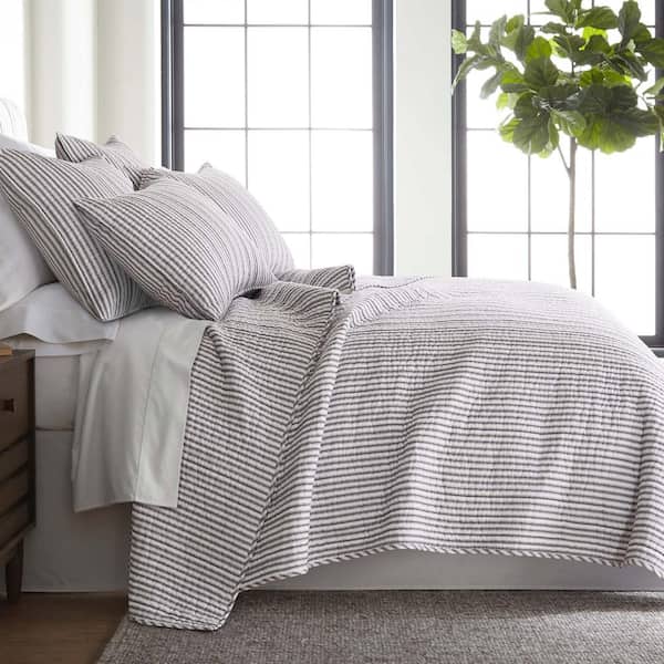 Tobago Stripe 2-Piece Charcoal Cotton Twin/Twin XL Quilt Set