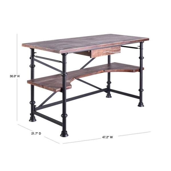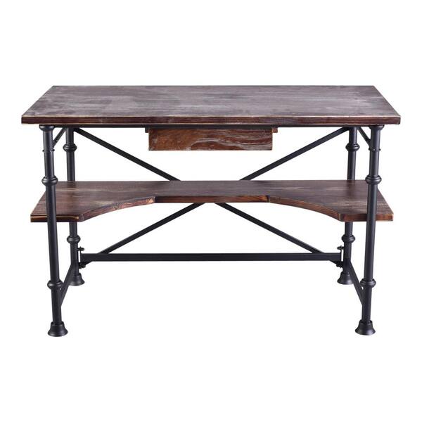 48 in. Rectangular Rustic Pine 1 Drawer Writing Desk with Built-In Storage