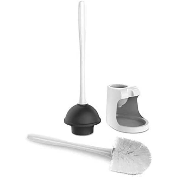Toilet Plunger and Bowl Brush Combo for Bathroom Cleaning, White, 2-Sets, Toilet Brush and Holder