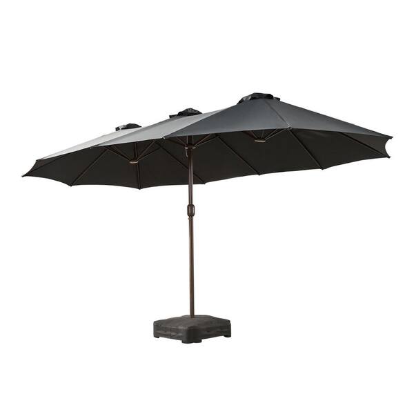 15 ft. x 9 ft. Rectangular Metal Double-sided Market Patio Umbrella with Base and Crank in Dark Gray