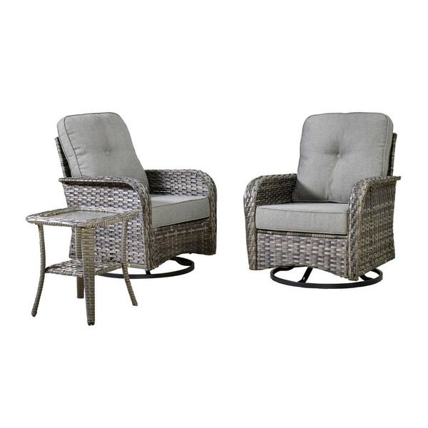 Galene Gray 3-Piece Wicker Outdoor Patio Conversation Swivel Rocking Chair Seating Set with Dark Gray Cushions