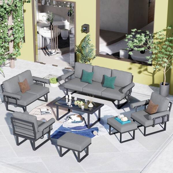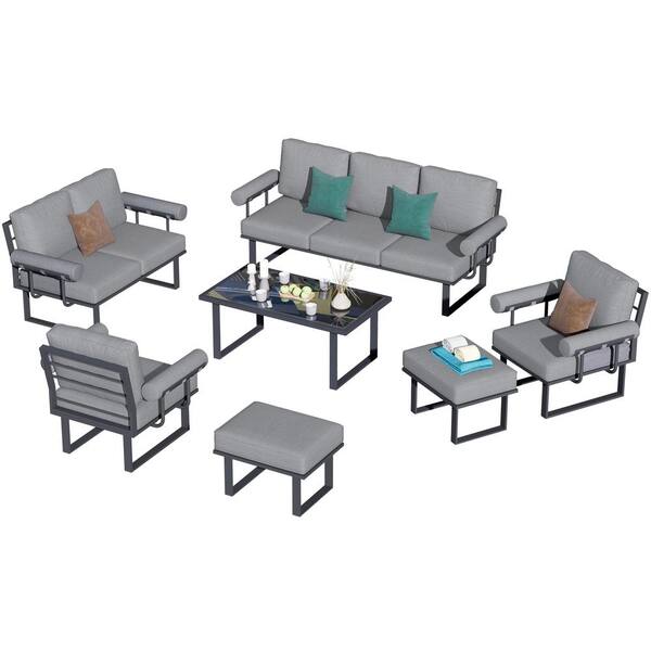 Norris Gray 7-Piece Aluminum Modern Outdoor Patio Conversation Sofa Seating Set with Gray Cushions