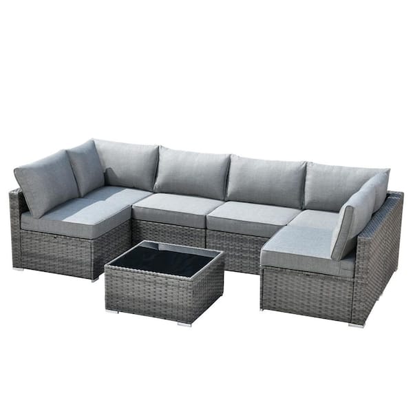 Sanibel Gray 7-Piece Wicker Outdoor Patio Conversation Sofa Sectional Set with Dark Gray Cushions