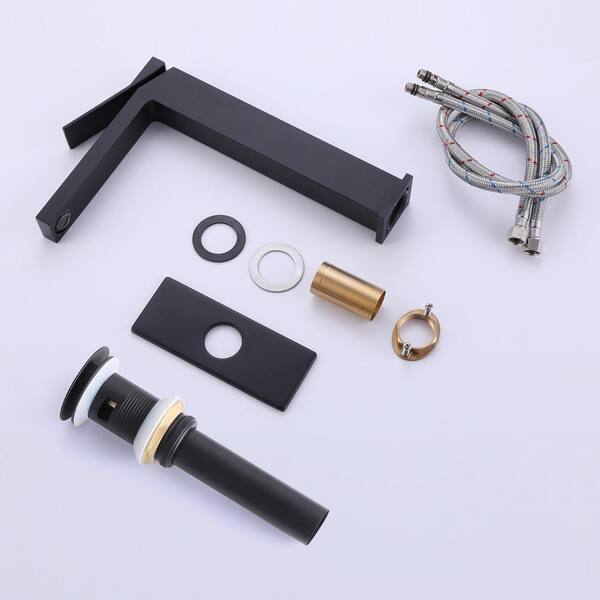 12 in. Solid Brass Single Handle Vessel Sink Bathroom Faucet with Deckplate Included and Drain Kit in Matte Black