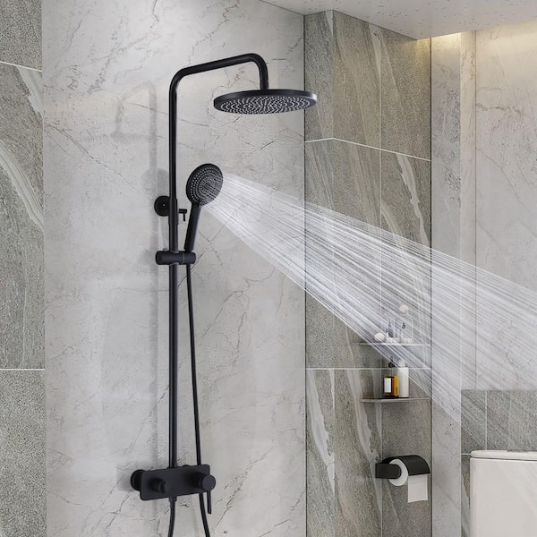 3-Spray Multi-Function Wall Bar Shower Kit with Tub Faucet and 3-Setting Hand Shower in Matte Black