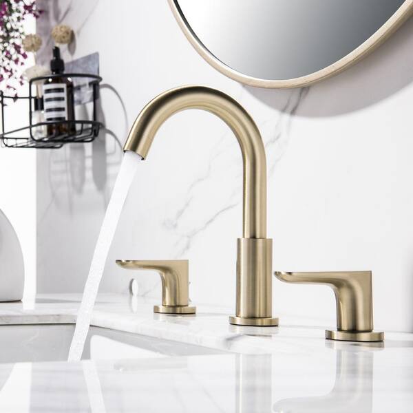 8 in. W spread Deck Mount 2-Handle Bathroom Faucet in Brushed Gold