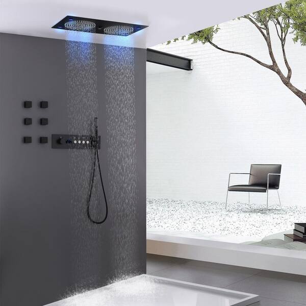 Luxury LED Thermostatic Single-Handle 4-Spray Patterns Ceiling Mount Shower Faucet in Matte Black