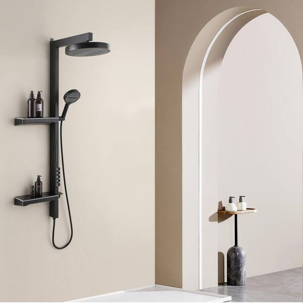 Luxury Thermostatic 4-Spray Multi-Function Tub and Shower Faucet with Hand Shower in Matte Black