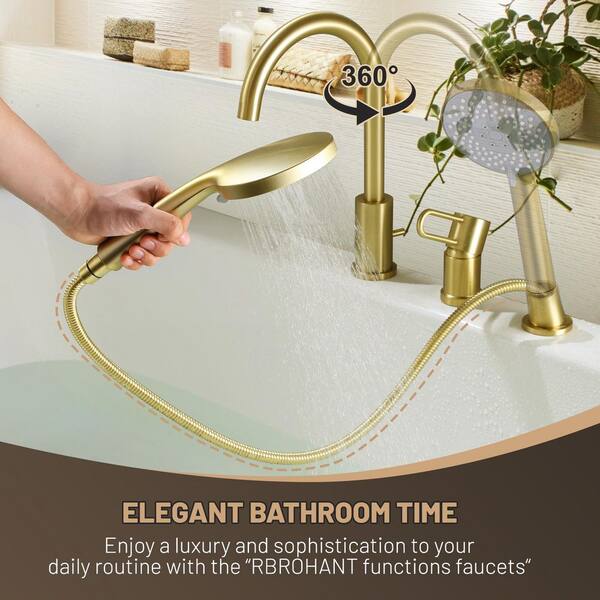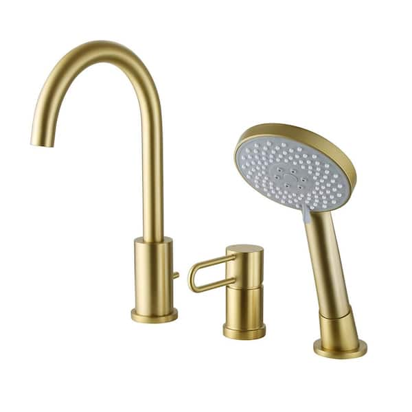 Single-Handle Deck-Mount Roman Tub Faucets, Bathroom Tub Filler Faucets with Handheld in Brushed Gold