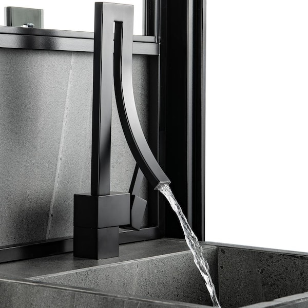 Single Handle Single Hole Bathroom Faucet with Deckplate Included in Matte Black