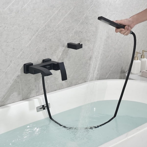 Single-Handle Wall Mount Roman Tub Faucet with Hand Shower in Matte Black