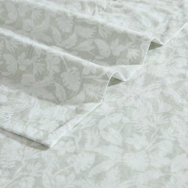 Palm Day 4-Piece Green Cotton Queen Sheet Set