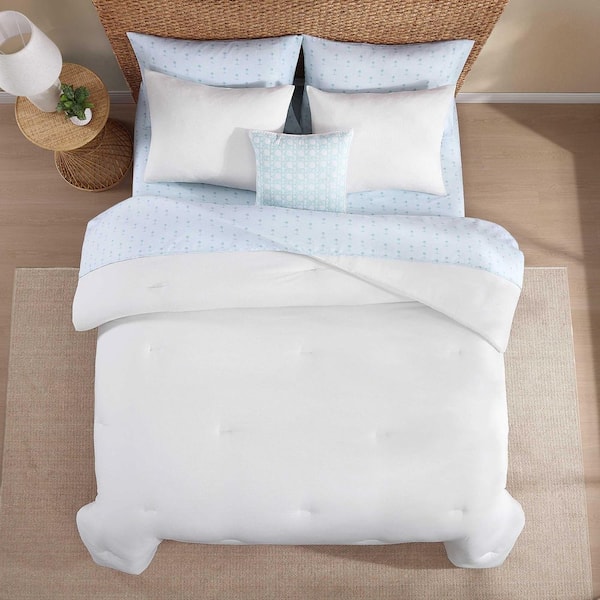 TB Seersucker 8-Piece White Textured Polyester King Bonus Comforter Set