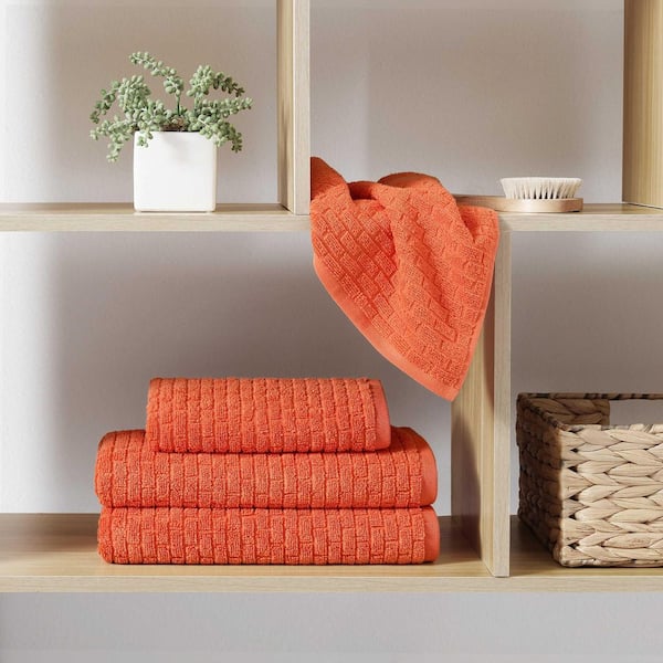Brick Texture Flame Orange 6-Piece Terry Cotton Towel Set