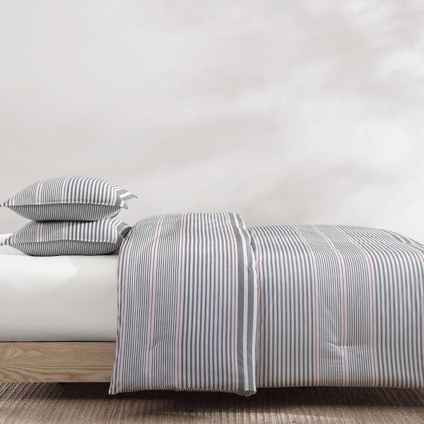 Danbury Stripe 2-Piece White/Navy/Red Plain Weave Cotton Twin Duvet Cover Set