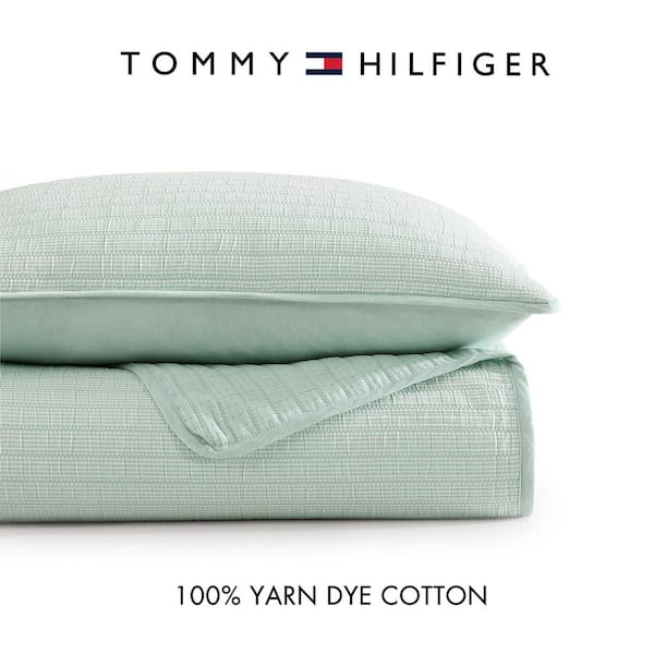 Ithaca Stripe 3-Piece White/Green Cotton Full/Queen Quilt Set