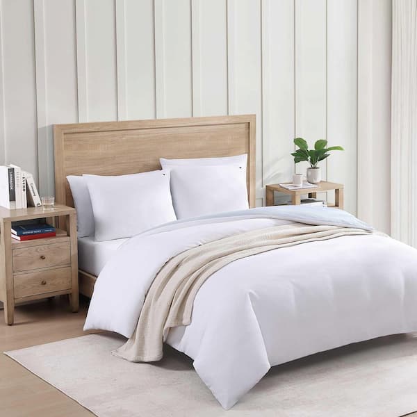 Micro Pique 3-Piece White Yarn Dye Cotton Blend King Duvet Cover Set