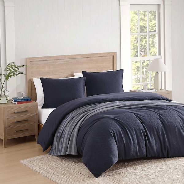 Monogram Matelasse 3-Piece Navy Blue Matelasse Cotton King Duvet Cover Set