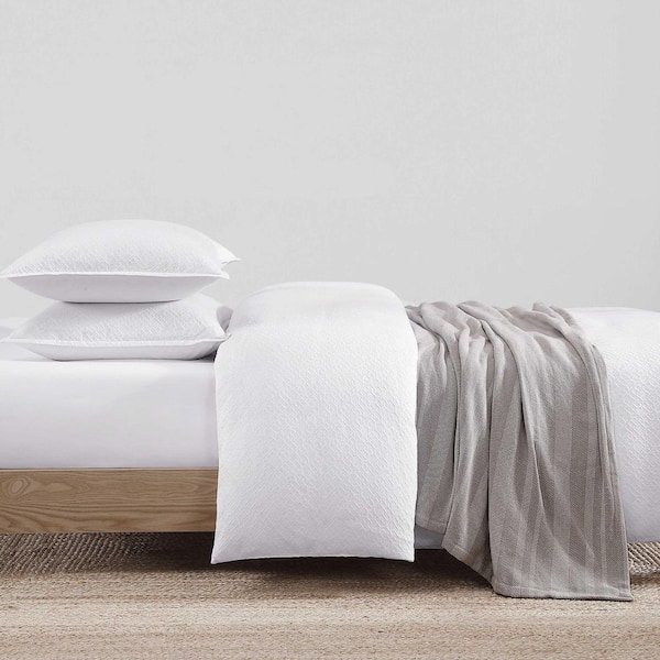 Monogram Matelasse 3-Piece White Matelasse Cotton King Comforter Set