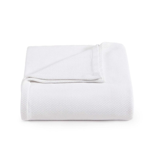 Pique Solid White Cotton Twin Blanket