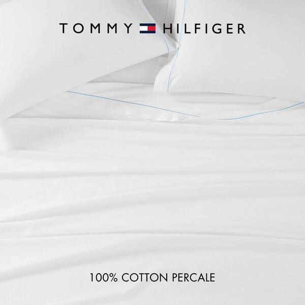 Solid 3-Piece White/Boathouse Blue Cotton Twin Sheet Set